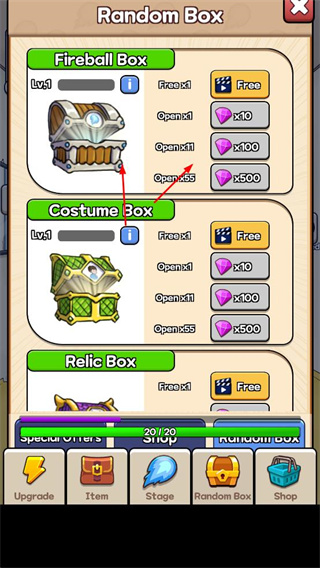 4、開啟隨機(jī)寶箱,獲取道具和獎勵,助力角色能力提升,推動游戲進(jìn)程。