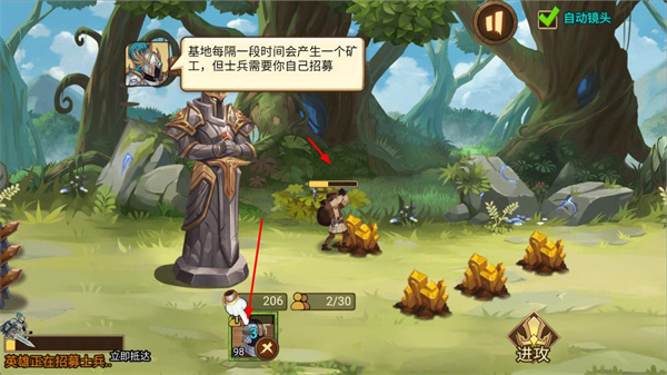1、基地會(huì)自動(dòng)生產(chǎn)礦工,玩家需自行招募士兵,組建戰(zhàn)斗隊(duì)伍。