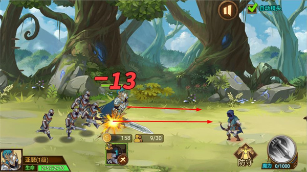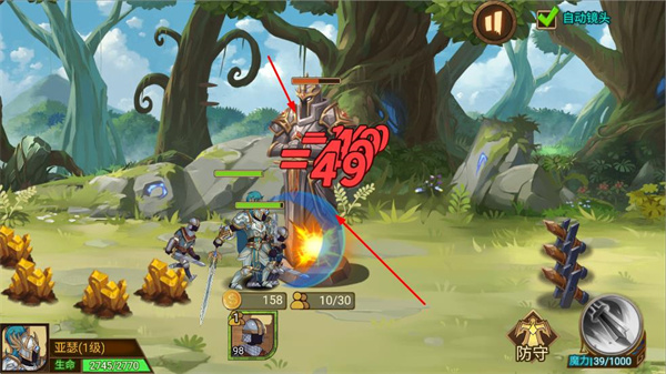 2、操控英雄和士兵進(jìn)攻敵方單位,通過戰(zhàn)斗獲取金幣和資源,提升部隊(duì)實(shí)力。
