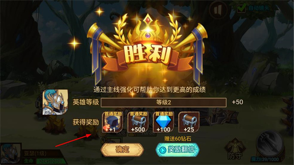 4、戰(zhàn)斗勝利后獲取英雄等級提升、鉆石、金幣等獎(jiǎng)勵(lì),用于強(qiáng)化英雄和部隊(duì),挑戰(zhàn)更高難度關(guān)卡。