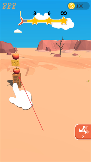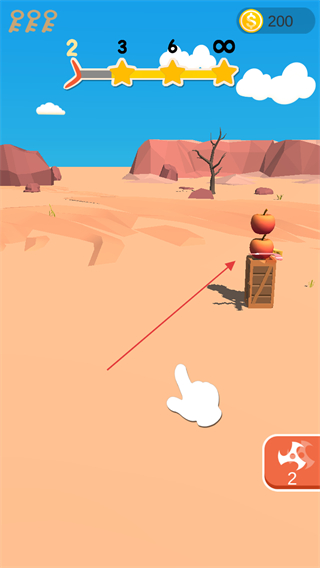 1、根據(jù)提示拖動(dòng)飛鏢,瞄準(zhǔn)帶有蘋(píng)果的木箱,調(diào)整角度后發(fā)射飛鏢。