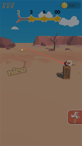 3、調(diào)整飛鏢發(fā)射角度和力度,瞄準(zhǔn)木箱,發(fā)射后出現(xiàn)nice提示。