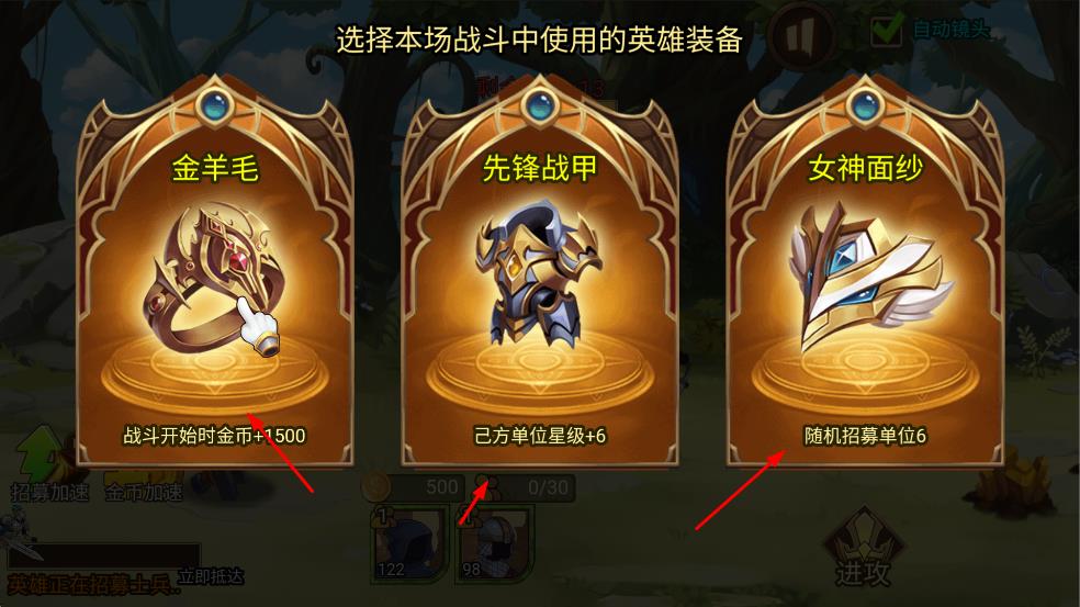 2、選擇英雄裝備,不同裝備提供不同增益效果,為戰(zhàn)斗提供策略支持。
