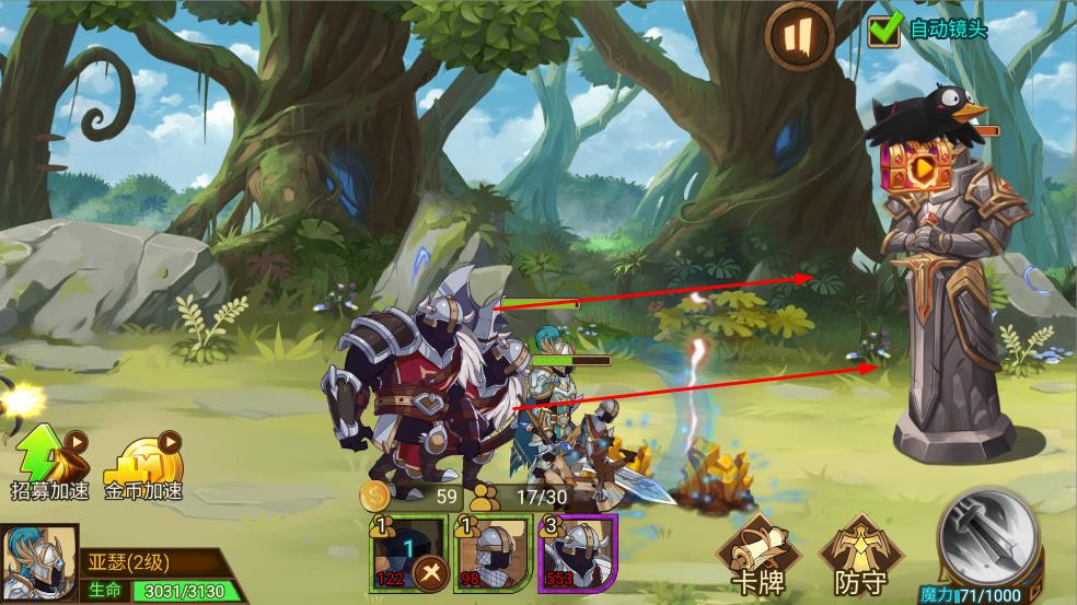 4、操控英雄和養(yǎng)成的兵種進(jìn)攻敵方單位,消滅敵人推進(jìn)關(guān)卡,獲取資源用于抽卡、成就解鎖和兵種養(yǎng)成。