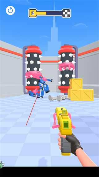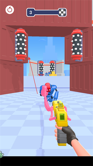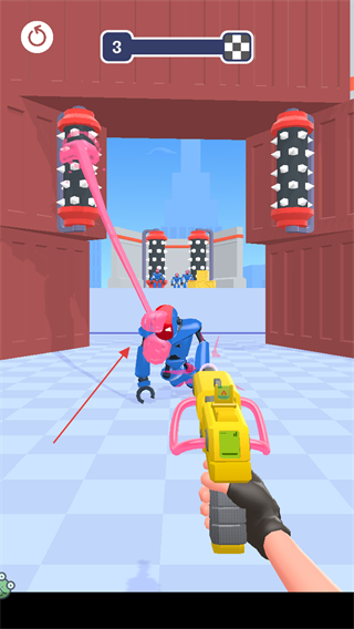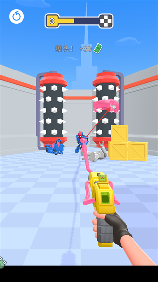 1、進(jìn)入第3關(guān)游戲場(chǎng)景,操控手中的黏膠槍,點(diǎn)擊屏幕上的橡皮敵人發(fā)射黏膠進(jìn)行攻擊。