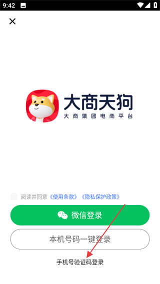3、在登錄選擇頁面,點擊手機號驗證碼登錄,進入手機號驗證碼登錄頁面。