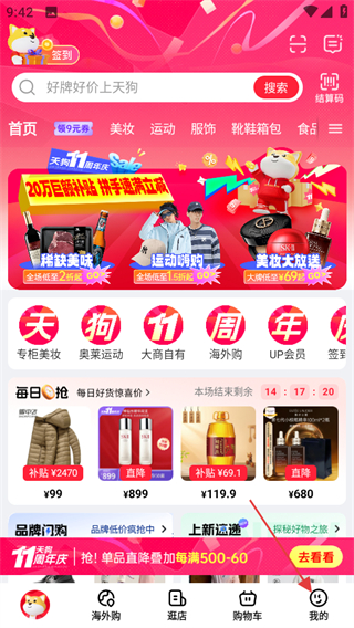 1、進入大商天狗,在首頁點擊底部我的,進入個人頁面。