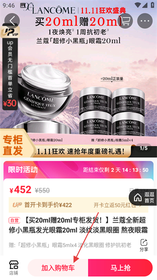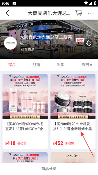 2、在美妝分類頁面,選擇熱門品牌,如LANCOME,進(jìn)入該品牌商品頁面。