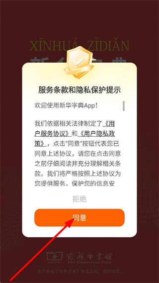 1、在服務(wù)條款和隱私保護(hù)提示彈窗中,點擊同意,進(jìn)入主頁面。