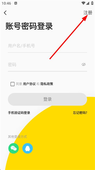 3、在賬號(hào)密碼登錄頁(yè)面,點(diǎn)擊右上角注冊(cè),進(jìn)入注冊(cè)新賬號(hào)頁(yè)面。