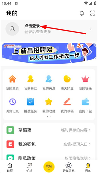 2、在個(gè)人頁(yè)面,點(diǎn)擊登錄,進(jìn)入賬號(hào)密碼登錄頁(yè)面。