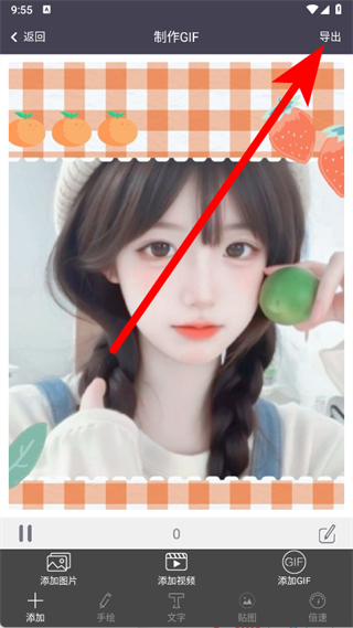 4、素材添加完畢后,點擊頁面右上角的導出按鈕,準備導出制作好的GIF。