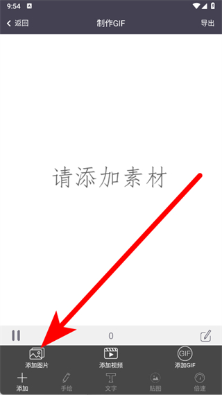 3、尺寸選定后,點擊底部添加圖片按鈕,導入想要制作成GIF動態(tài)圖的素材圖片。