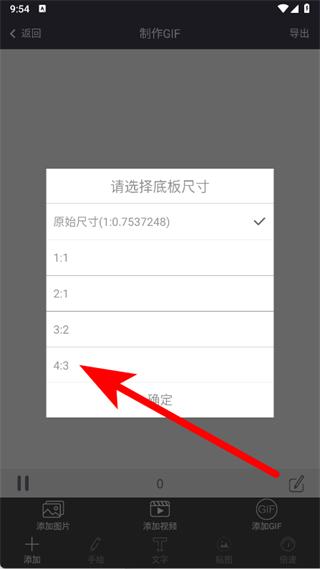 2、進入制作GIF頁面后,會彈出請選擇底板尺寸的選擇框,從中挑選合適的尺寸。