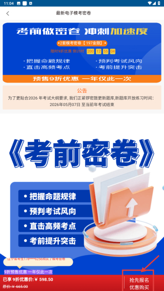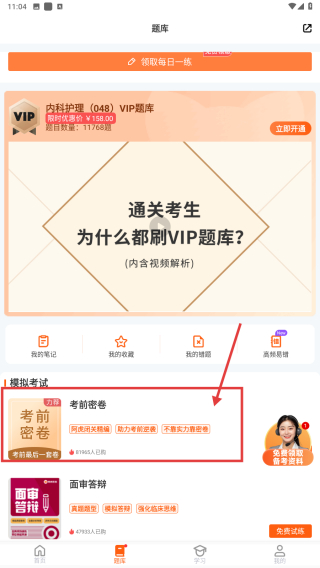 2、在題庫頁面,找到考前密卷板塊,點擊進入密卷詳情頁。