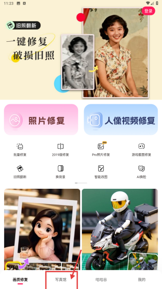 1、打開圖片修復(fù)類應(yīng)用,點(diǎn)擊底部寫真館選項(xiàng),進(jìn)入寫真館板塊。