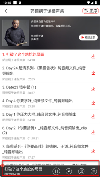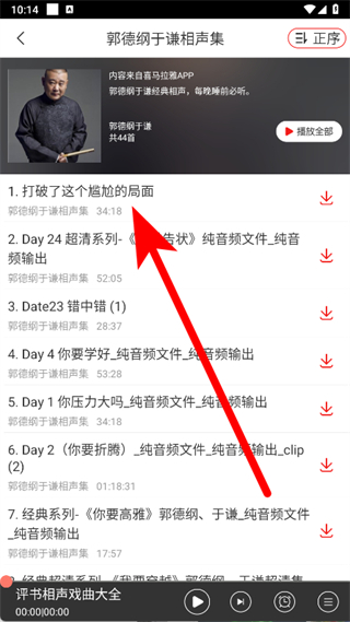 3、進入郭德綱于謙相聲集頁面后,點擊想要收聽的相聲音頻。