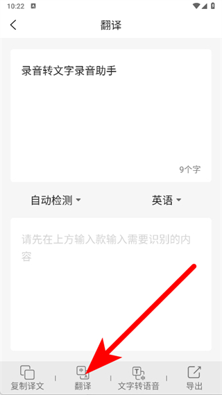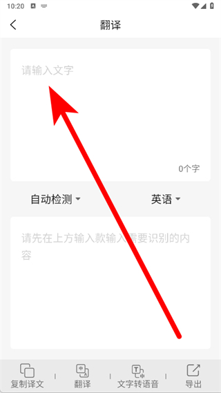 4、在翻譯頁面的輸入框內(nèi),輸入需要翻譯的文字內(nèi)容。
