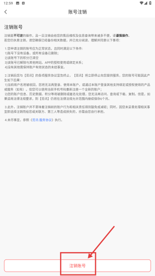 4、在賬號注銷頁面,點(diǎn)擊注銷賬號按鈕,提交賬號注銷申請。