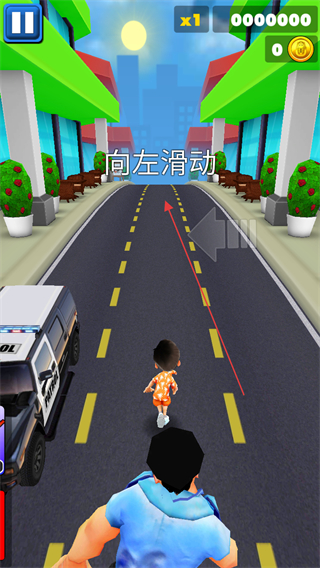 1、進(jìn)入游戲,根據(jù)提示向左滑動(dòng)屏幕,操控角色在道路上進(jìn)行移動(dòng),躲避前方出現(xiàn)的警車。