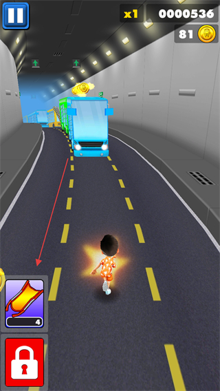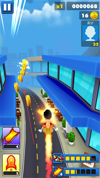3、當(dāng)角色獲得加速道具時(shí),如火箭圖標(biāo),點(diǎn)擊道具圖標(biāo)可以讓角色加速奔跑,獲取更多金幣。