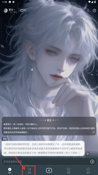 4、在角色詳情頁,點(diǎn)擊輸入框,開始創(chuàng)作與該角色相關(guān)的劇情內(nèi)容。