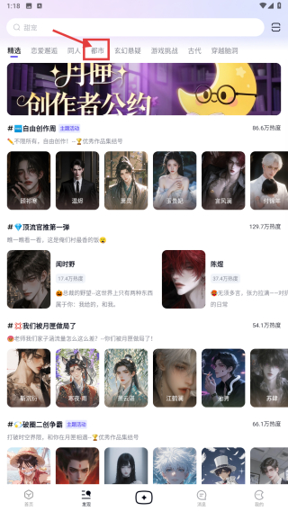 2、在創(chuàng)作頁面,點(diǎn)擊都市分類標(biāo)簽,篩選都市類角色內(nèi)容。