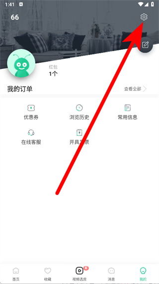 2、在我的頁面,點擊右上角的設置圖標。