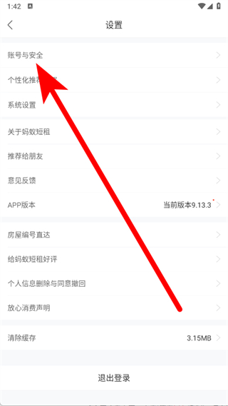 3、進入設置頁面后,點擊賬號與安全選項。