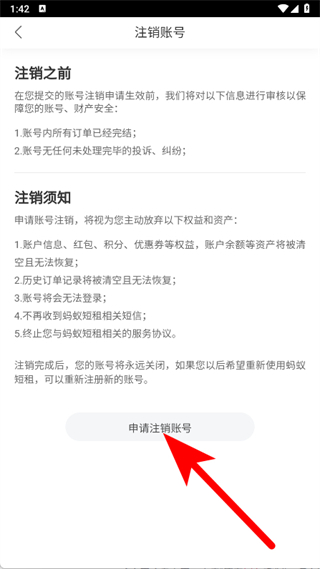 5、在注銷賬號頁面,點擊申請注銷賬號,提交賬號注銷申請。