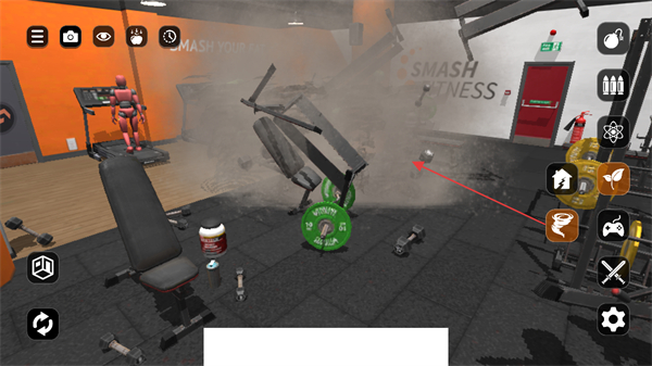 2、持續(xù)使用道具對健身房內(nèi)各類物品,如啞鈴、杠鈴等,進(jìn)行肆意砸擊,制造混亂場面。