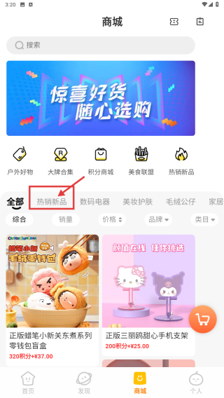 2、在商城頁(yè)面,點(diǎn)擊熱銷(xiāo)新品分類(lèi)標(biāo)簽,篩選熱銷(xiāo)新品類(lèi)商品。
