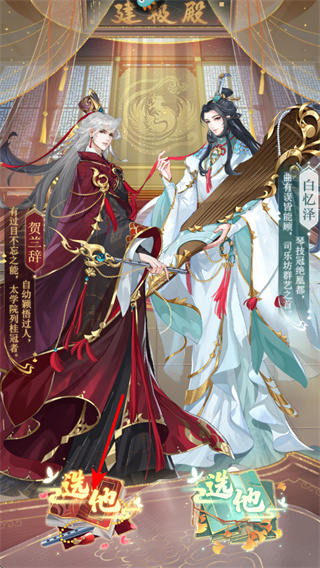 2、選擇劇情角色,在角色選擇界面中,點(diǎn)擊選他按鈕,選擇賀蘭辭角色,開啟與該角色相關(guān)的劇情線或功能模塊。