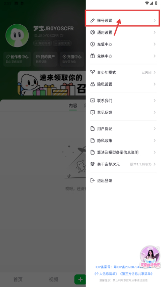 3、在設(shè)置菜單中,點(diǎn)擊賬號(hào)設(shè)置選項(xiàng),進(jìn)入賬號(hào)設(shè)置頁(yè)面。