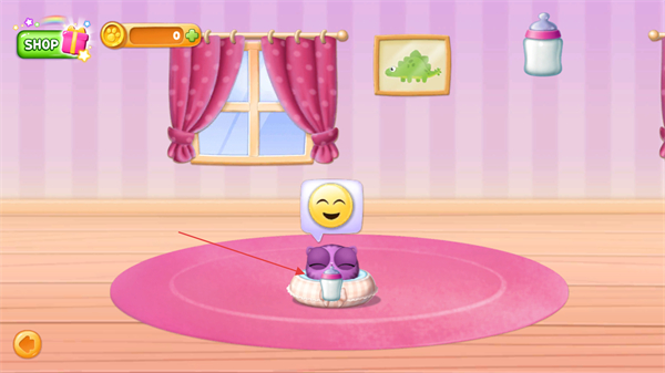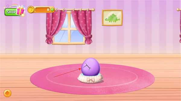 1、進(jìn)入游戲,看到紫色寵物蛋在粉色墊子上,等待它孵化。