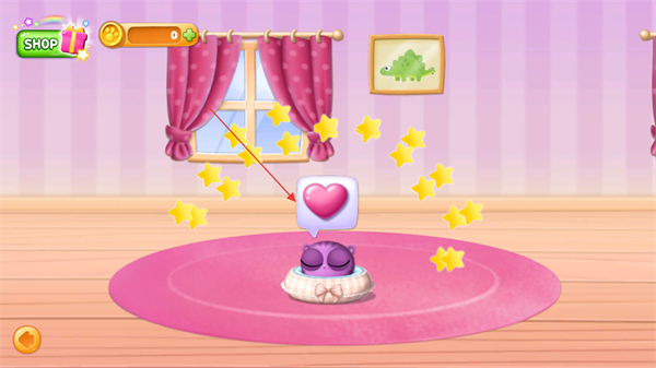 2、寵物孵化出來后,點(diǎn)擊出現(xiàn)的愛心標(biāo)識(shí),對(duì)寵物進(jìn)行關(guān)愛互動(dòng),增加親密度。