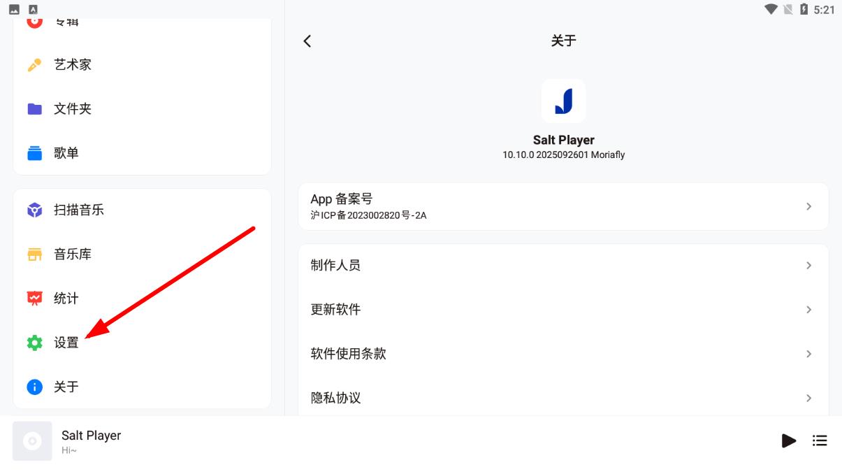 1、在音樂播放軟件主界面,點(diǎn)擊左側(cè)設(shè)置,進(jìn)入設(shè)置頁面。
