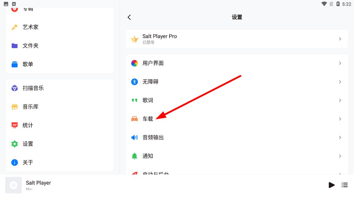 2、在設(shè)置頁面,點(diǎn)擊車載,進(jìn)入車載設(shè)置頁面。
