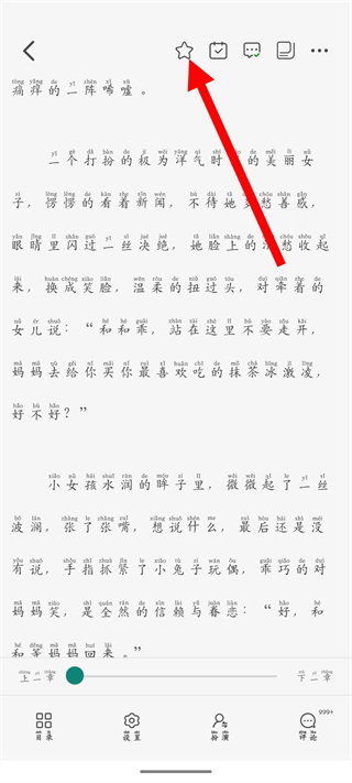 4、能沉浸式閱讀小說內(nèi)容,點(diǎn)擊頁面頂部的星形圖標(biāo),將這部小說收藏起來,方便之后查找閱讀。