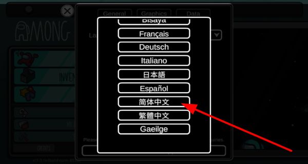 4、在展開的語(yǔ)言列表里,找到并點(diǎn)擊簡(jiǎn)體中文選項(xiàng),即可將游戲語(yǔ)言設(shè)置為中文,方便游戲。
