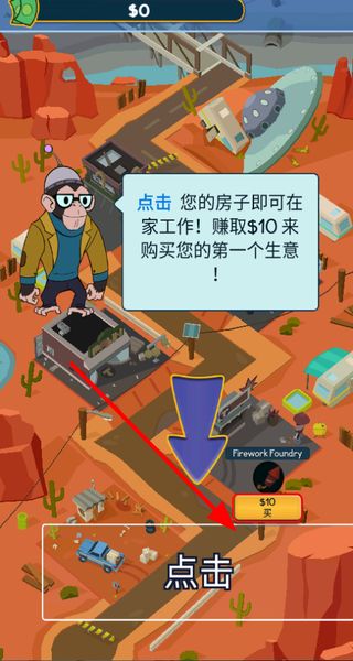 1、開(kāi)局點(diǎn)擊房子,能在家工作賺10美元,有了錢就可以去購(gòu)買第一個(gè)生意,開(kāi)啟賺錢之路。