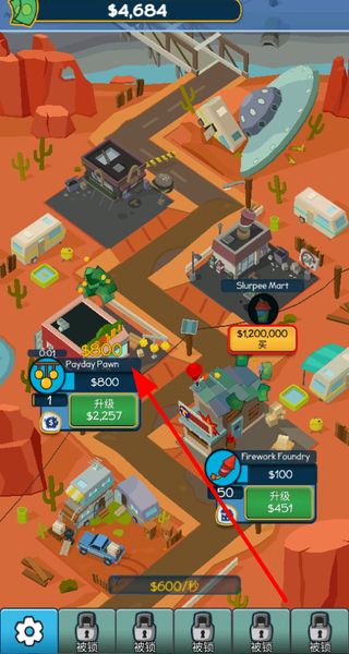 3、當(dāng)有足夠資金時(shí),點(diǎn)擊升級(jí)按鈕,能提升生意的等級(jí),讓生意帶來(lái)更多的收益。