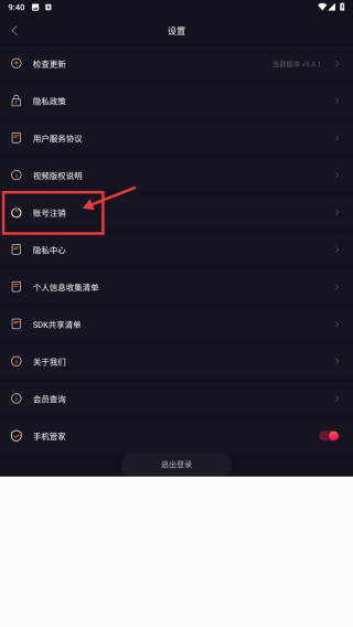 3、在設(shè)置界面,點(diǎn)擊賬號注銷選項(xiàng),查看注銷說明。