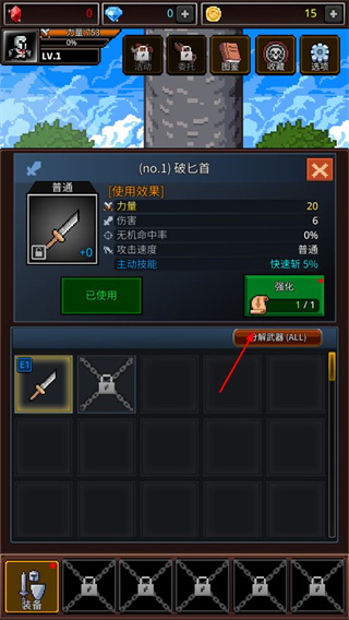 4、持續(xù)參與戰(zhàn)斗、升級角色和強化裝備,朝著通關更多關卡、成為強大冒險者的目標努力。