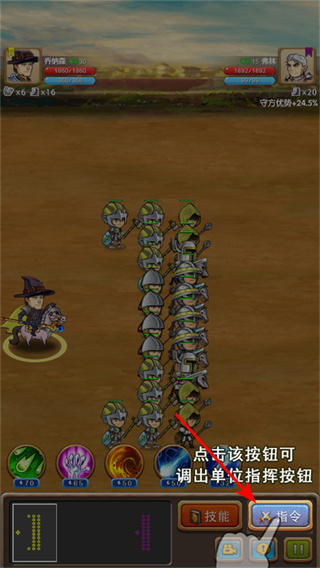 2、調(diào)出指揮按鈕,點(diǎn)擊指令按鈕,調(diào)出單位指揮按鈕,以便在戰(zhàn)斗中對(duì)不同單位下達(dá)戰(zhàn)術(shù)指令,優(yōu)化戰(zhàn)斗策略。