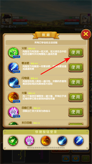3、使用戰(zhàn)斗技能,在技能界面中,點(diǎn)擊使用按鈕,釋放火球等主動(dòng)技能,對(duì)敵方單位造成傷害,提升戰(zhàn)斗優(yōu)勢(shì)。