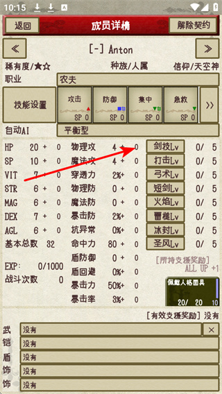 2、查看成員詳情,在成員詳情界面中,查看Anton的職業(yè)、技能、屬性等信息,了解成員的能力特點(diǎn),為任務(wù)分配提供依據(jù)。