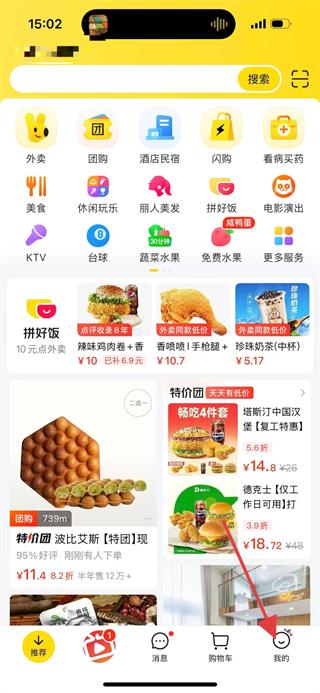 1、進(jìn)入美團(tuán),在首頁點(diǎn)擊底部我的,進(jìn)入個人頁面。