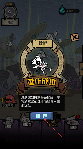 4、點擊進化界面的確定按鈕,完成進化,如從虛鯤進化為骨鯤,提升等級和實力。