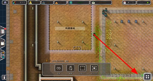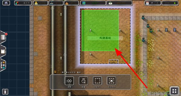 1、在游戲中,選擇合適區(qū)域構(gòu)建基礎(chǔ)建筑,為監(jiān)獄設(shè)施搭建打好底,逐步完善監(jiān)獄布局。